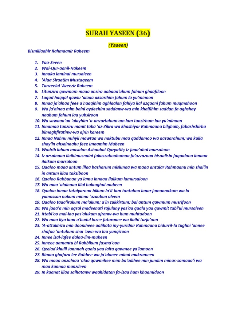 | Judul Surah: Surah Yaseen In English Yaseen Surah In English Pdf Download |